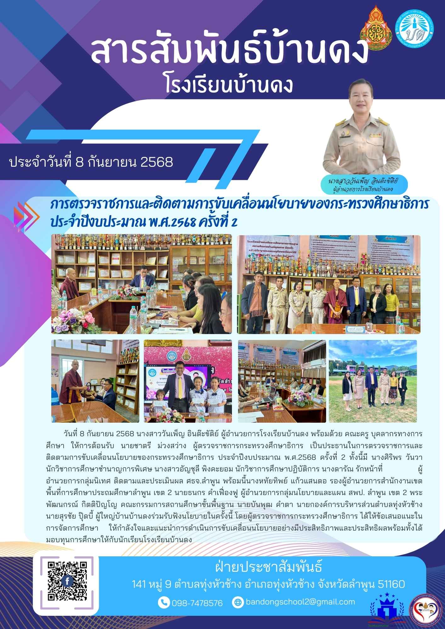 การตรวจราชการและติดตามการขับเคลื่อนนโยบายของกระทรวงศึกษาธิการ ประจำปีงบประมาณ พ.ศ.2568 ครั้งที่ 2
