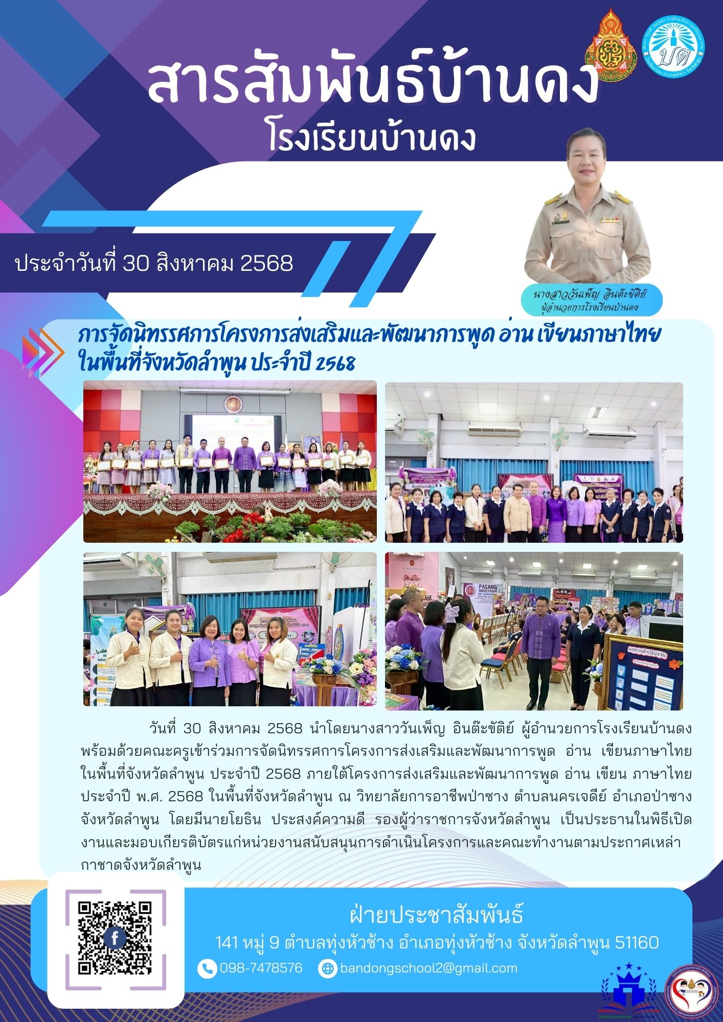 การจัดนิทรรศการโครงการส่งเสริมและพัฒนาการพูด อ่าน เขียนภาษาไทย ในพื้นที่จังหวัดลำพูน ประจำปี 2568